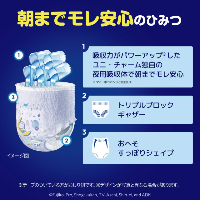 マミーポコ夜用パンツはおしっこ5回分の吸収パワーで朝までモレ安心♪