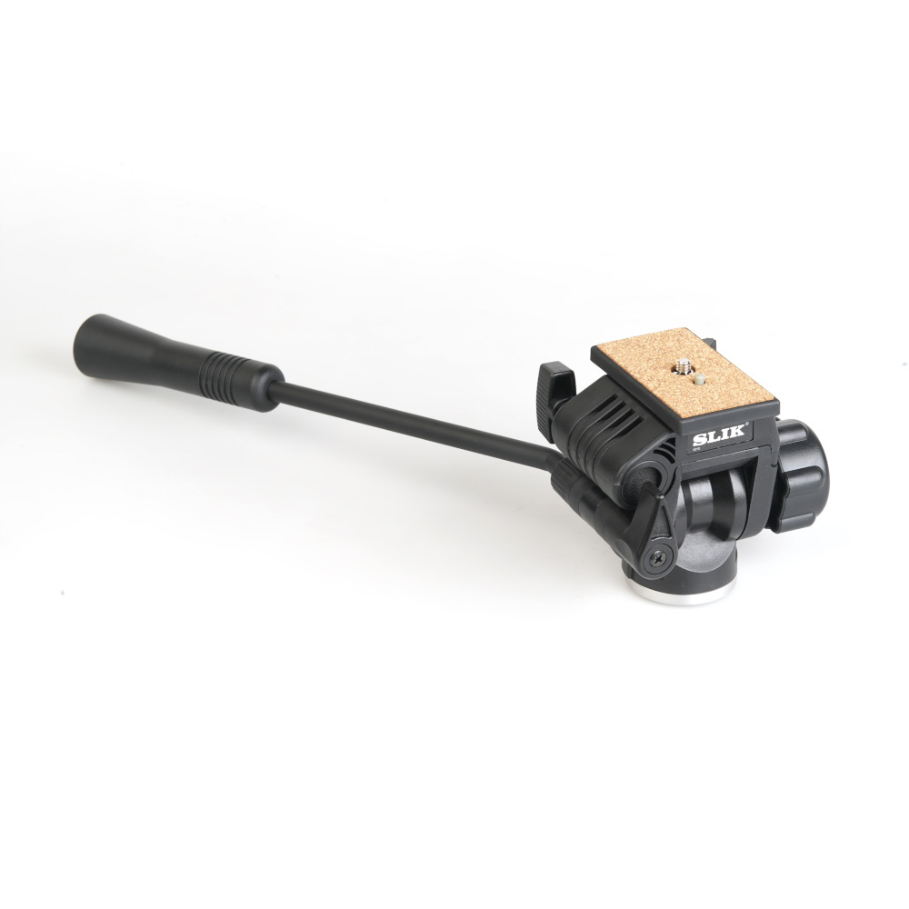 パンハンドルは上向き(低い位置の撮影に対応)、下向き(通常撮影)、左側、右側のいずれにも変更可能です。ハンディビデオカメラの左手操作、ミラーレスカメラの右手操作のいずれでも、もう片方の手で雲台の方向を操作できます。さらに、パンハンドルを外しても使用できます。