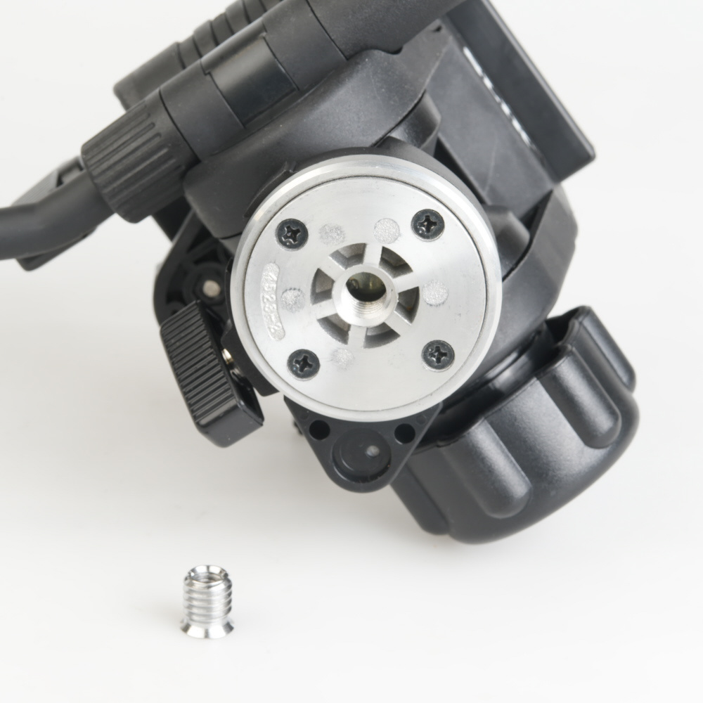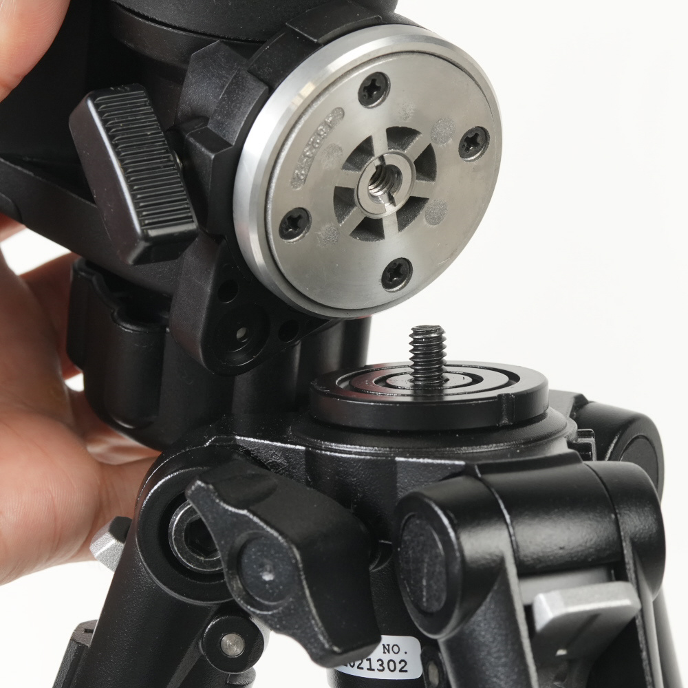 雲台底部のダブルネジアダプターを取り付けた状態ではU1/4、取り外すとU3/8に対応します。そのため、あらゆる三脚に取り付けできます。