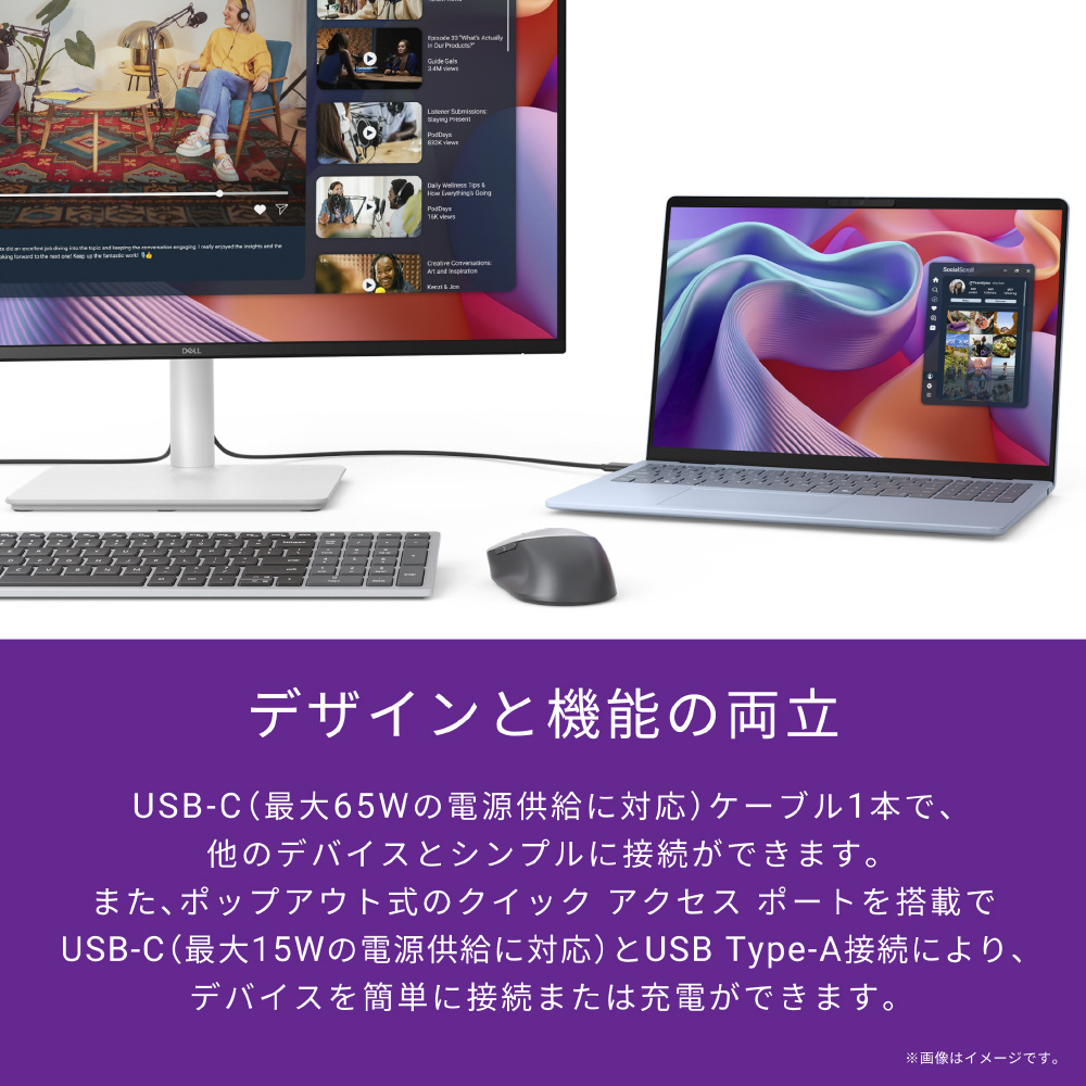 USB-C(最大65Wの電源供給に対応)ケーブル1本で、他のデバイスとシンプルに接続し、自宅のパソコン環境をすっきり整理しましょう。