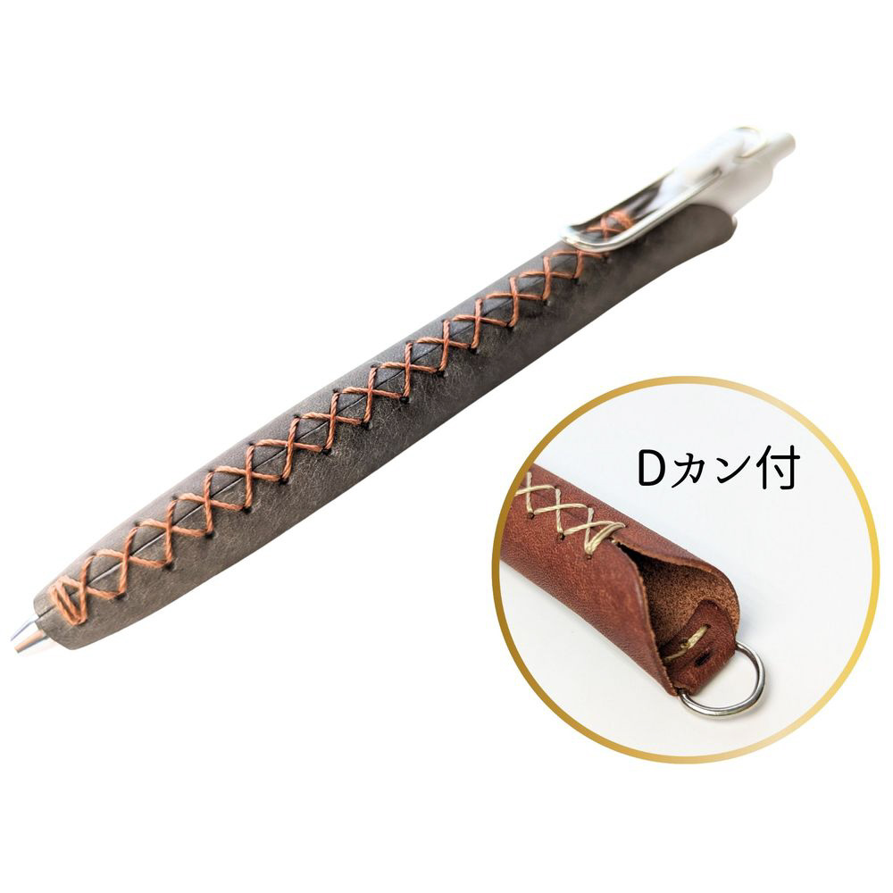 本革のペンカバーLUCE Pen Fit Dカン付タイプ。ネックストラップを付けてすぐ書ける!