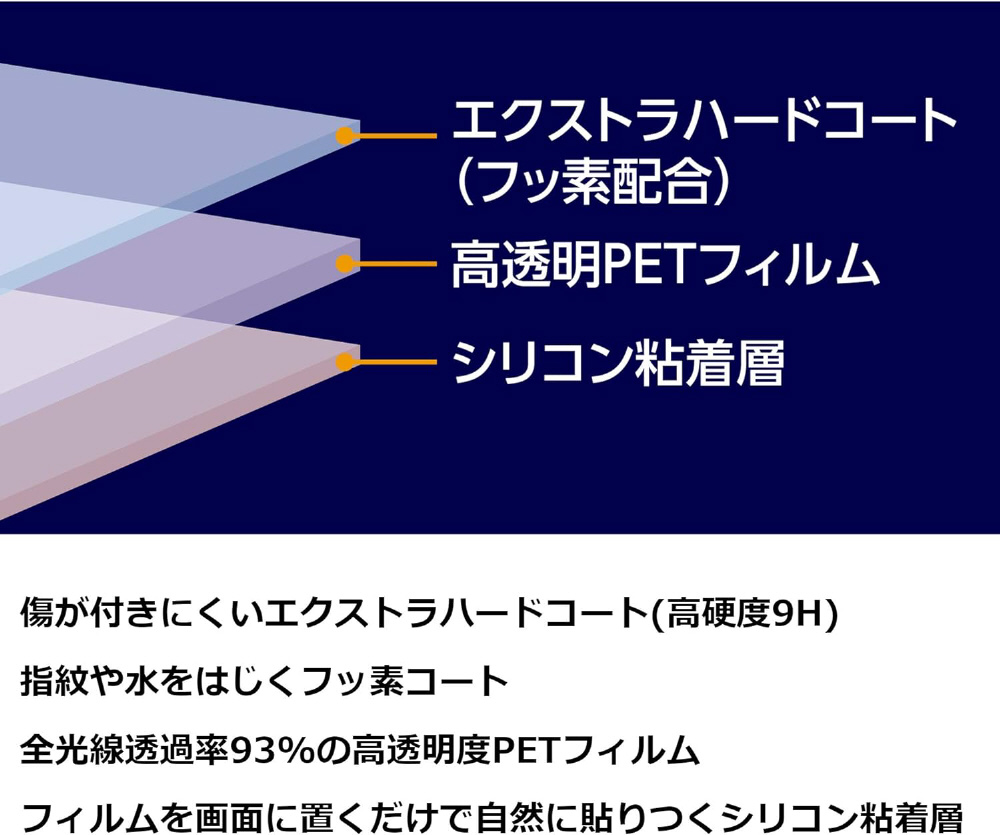 エクストラハードコートによりガラスと同じ硬度9Hでありながら割れに強い安心フィルム。
