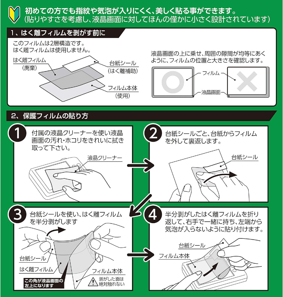 各機種に合わせた専用サイズなので、パッケージから取り出してそのまま貼り付けが可能です。