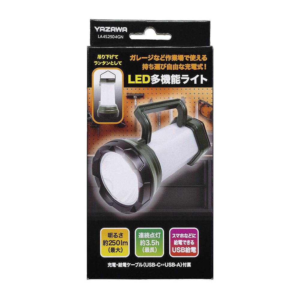 USB充電式LED強力ライト&ランタン LA4S2504GN Type-C充電 IPX4(防飛まつ仕様) USB給電可能 [LED /充電式 /防水対応]