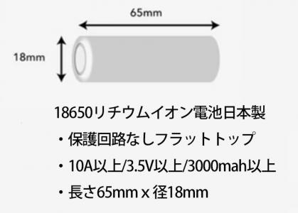 ・最大90%の高効率電力変換(長さ65mmの18650バッテリーのみ)