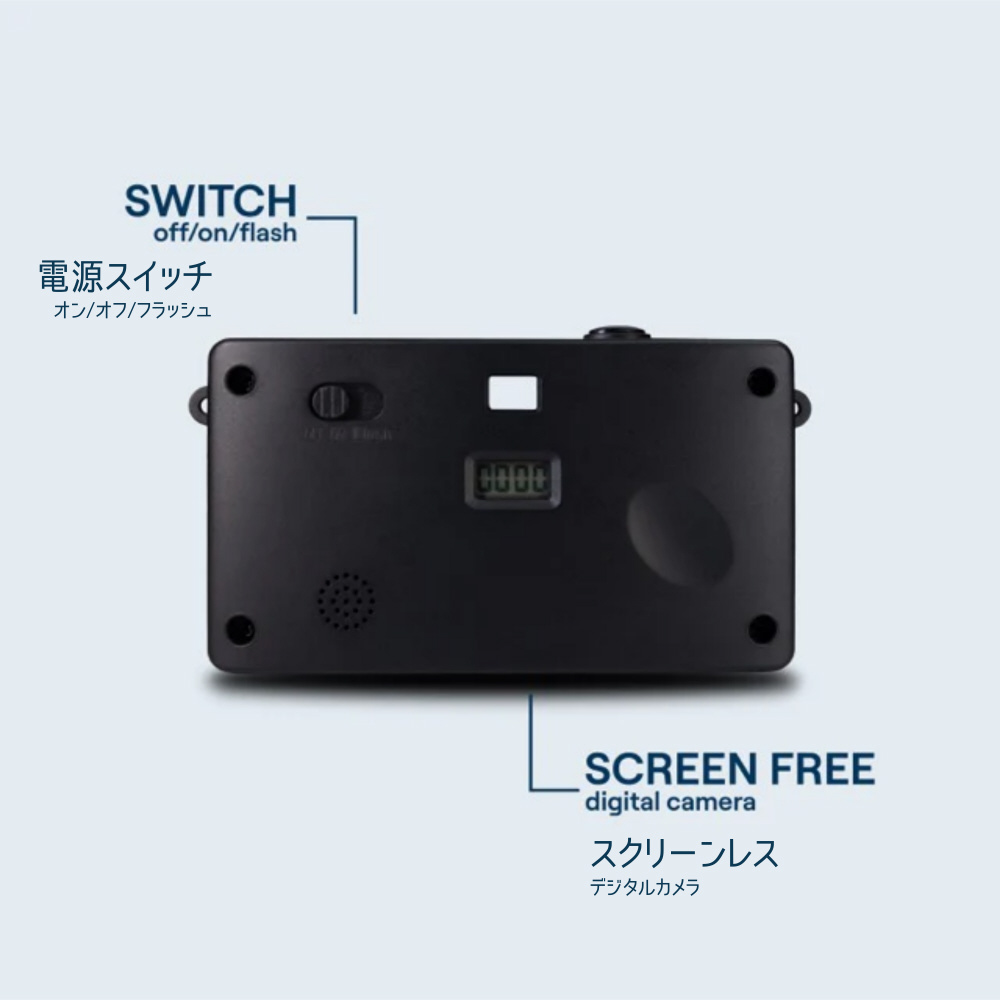 あえてスクリーンを無くす事で、撮影後すぐ画面確認というデジタルカメラの常識から離れ、フィルムカメラのような手軽さと現像を待つワクワク感をデジタルで実現。