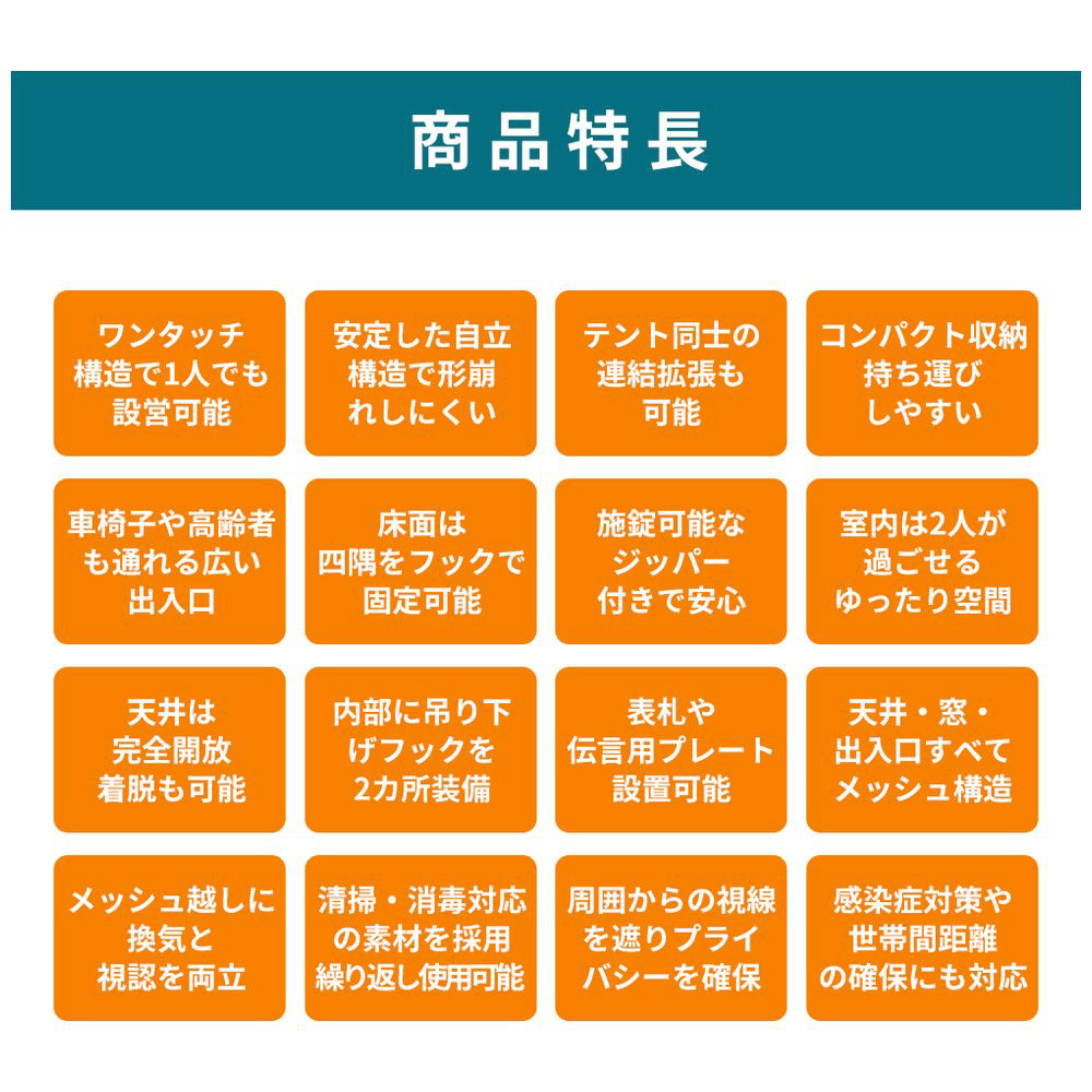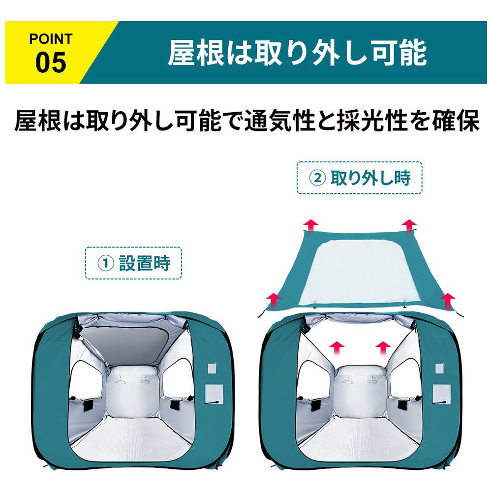 ■天井・窓・出入口すべてメッシュ付き二重構造、天井は着脱可能