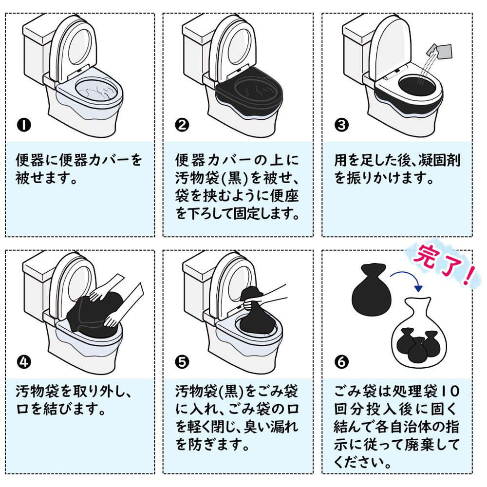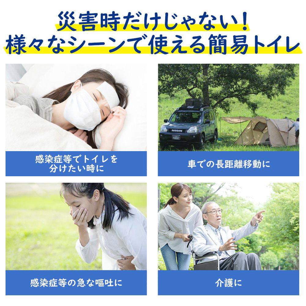 緊急・災害時 非常用 簡易トイレ。水がなくても清潔でニオイなし。