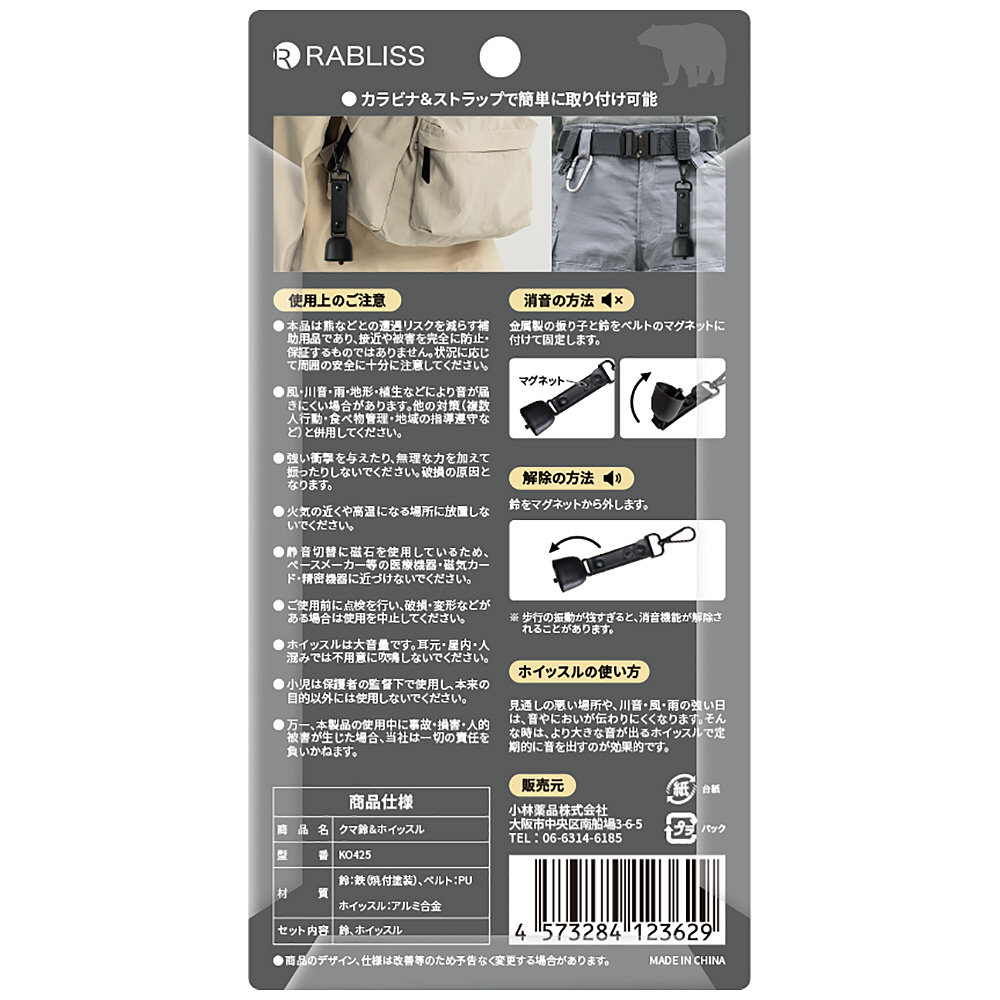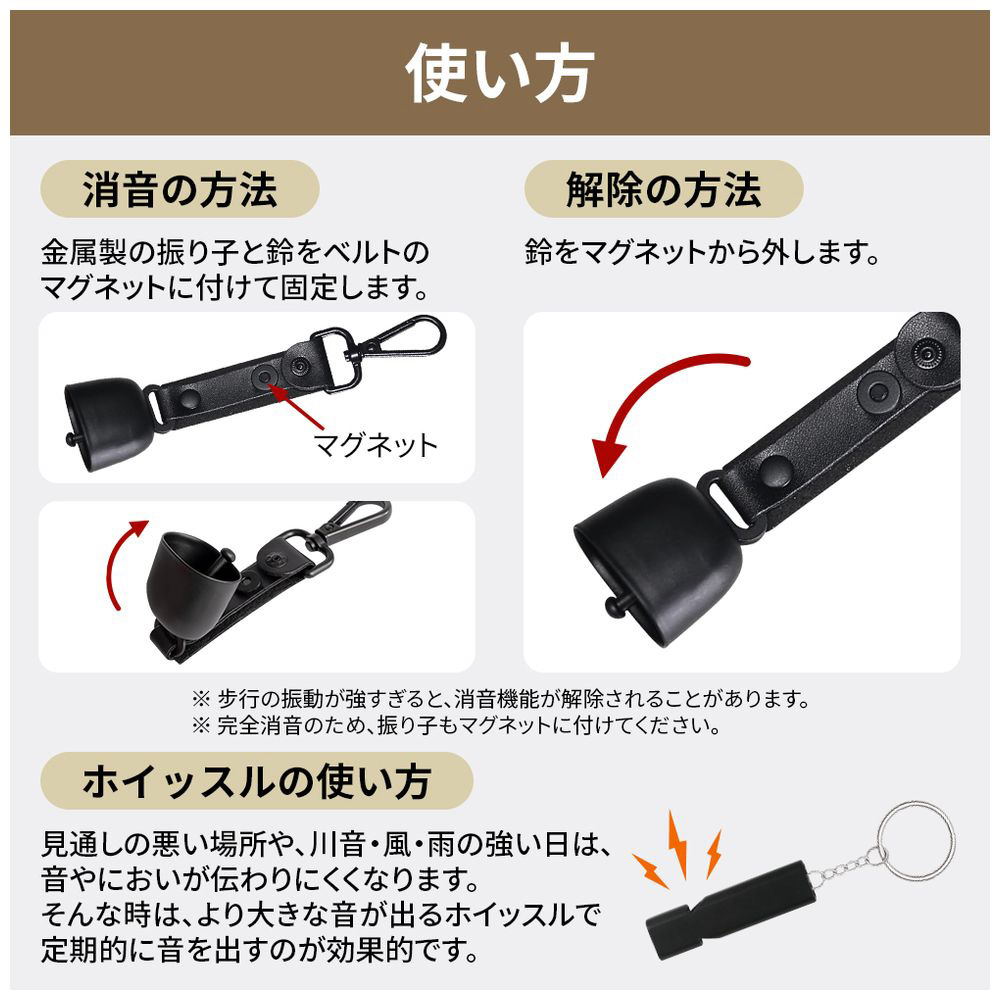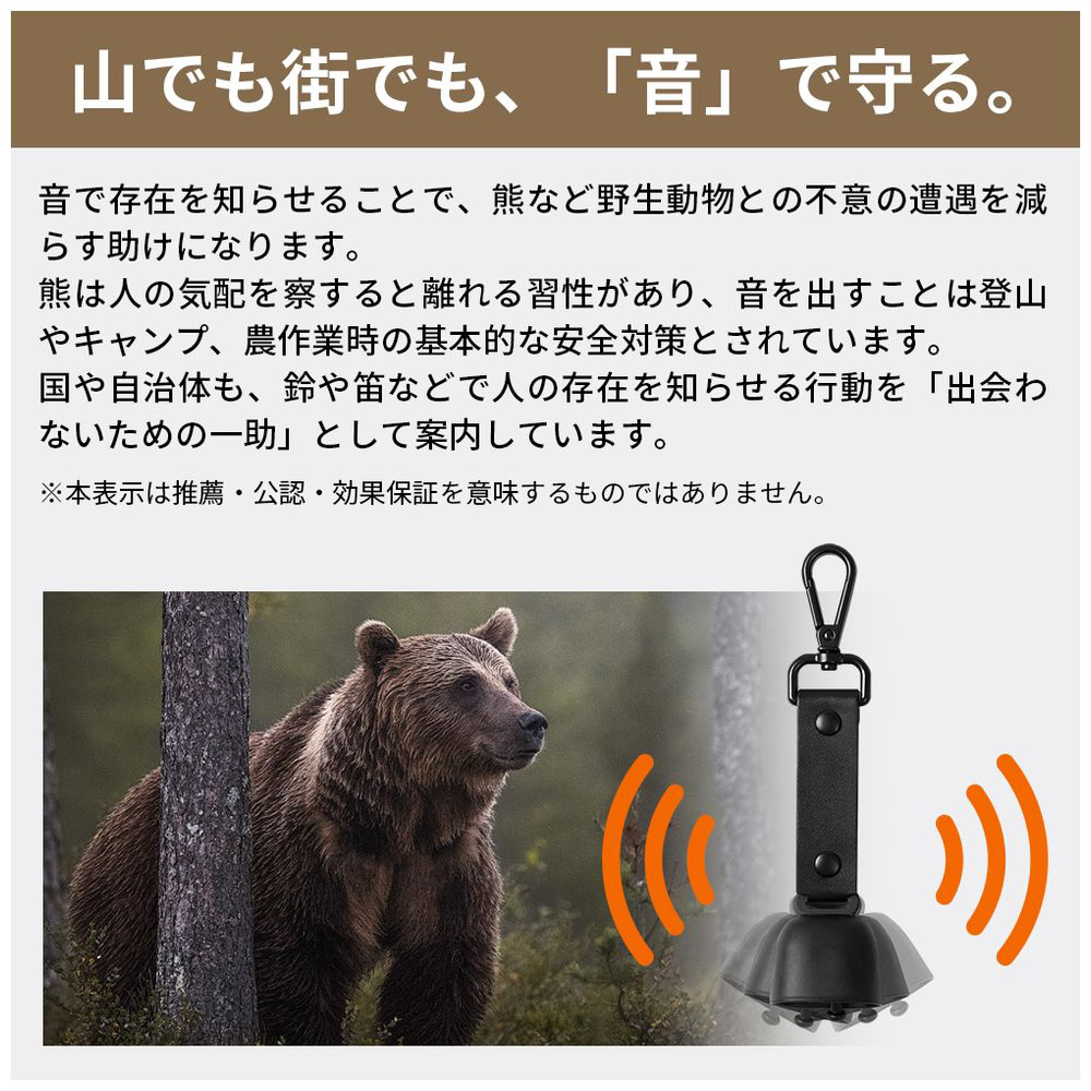 ※本品は熊などとの遭遇リスクを減らす補助用品であり、接近や被害を完全に防止・保証するものではありません。状況に応じて周囲の安全に十分に注意してください。