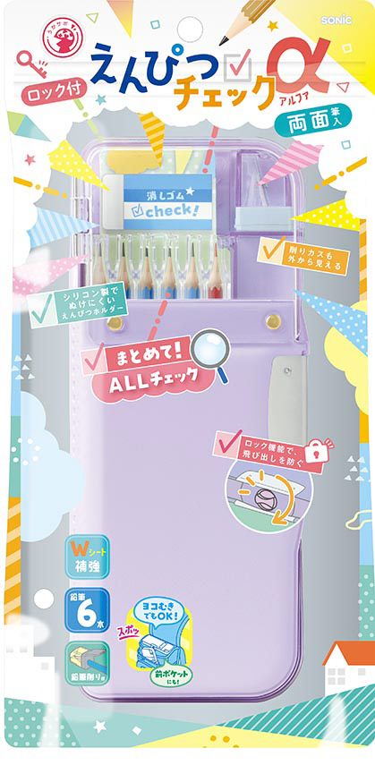 ●鉛筆の削り忘れや入れ忘れ、消しゴムが無い!…そんなうっかりを1か所チェックで解決!えんぴつチェックα両面筆入