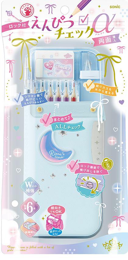 えんぴつチェックα両面筆入 ロック付 うかサポ リアナティアラ ライトブルー FD-2567-LB