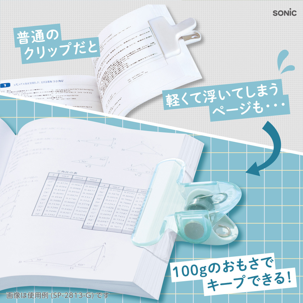 ●約100gの重さで、分厚い本もページを開いたままキープできるブッククリップ!手でページをおさえなてくもいいからストレスゼロ