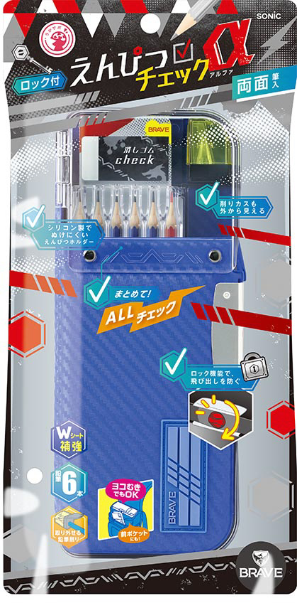 ●鉛筆の削り忘れや入れ忘れ、消しゴムが無い!…そんなうっかりを1か所チェックで解決!えんぴつチェックα両面筆入