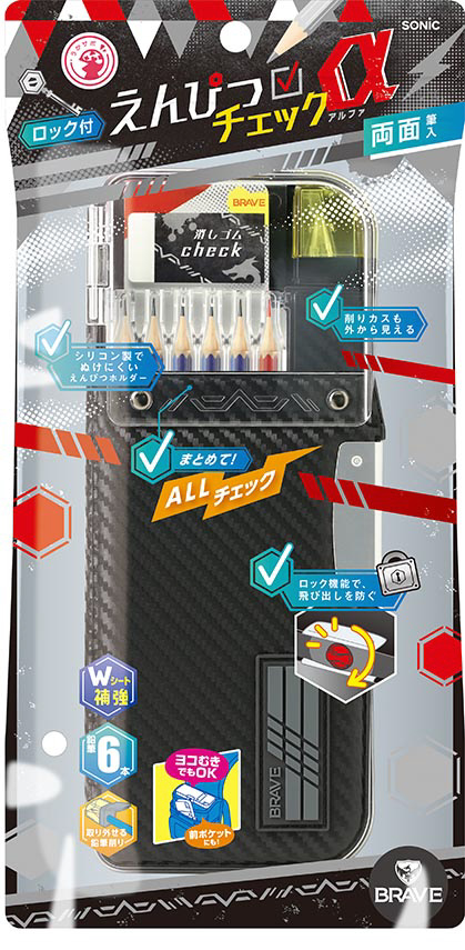 ●鉛筆の削り忘れや入れ忘れ、消しゴムが無い!…そんなうっかりを1か所チェックで解決!えんぴつチェックα両面筆入