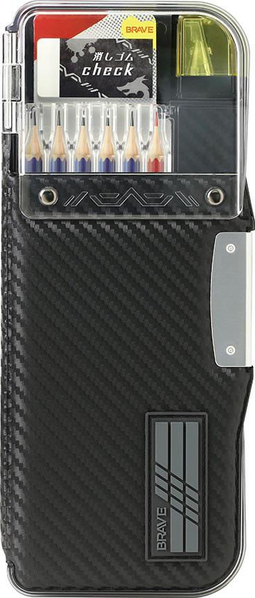 えんぴつチェックα両面筆入 ロック付 うかサポ ブレイブ ブラック FD-2543-D