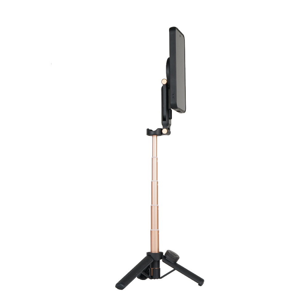 三脚部分を開けば、テーブルトップに設置するのに最適な三脚となります。ポール部分はフリーストップ式で、狙った高さに簡単に調整可能。