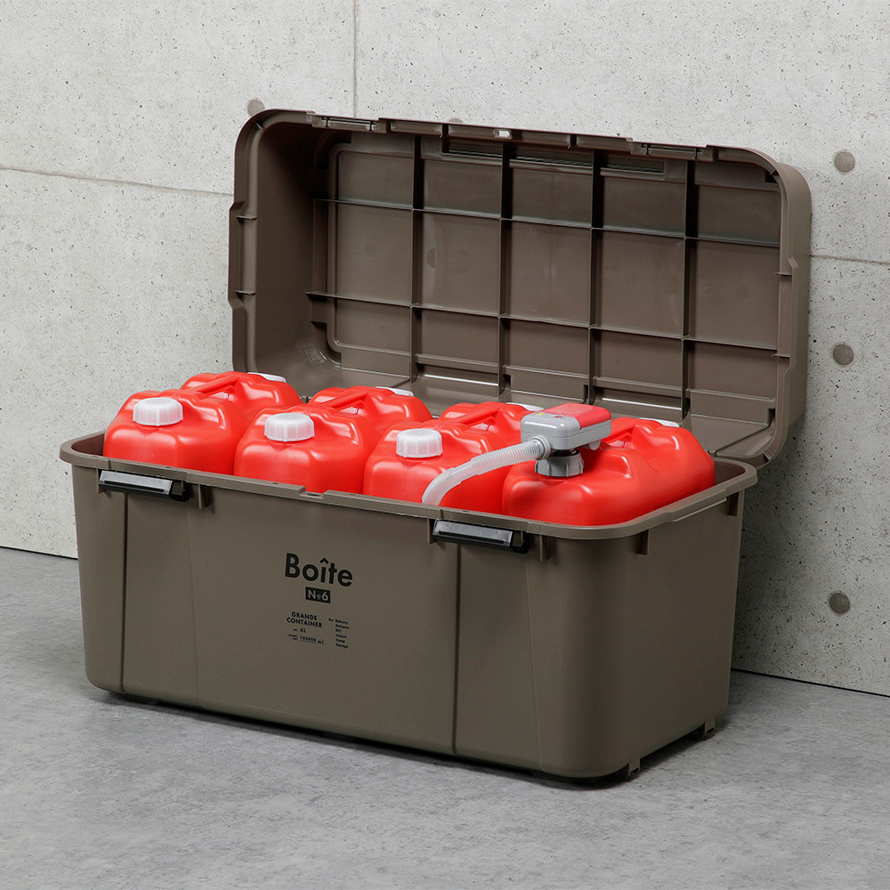 キャンプ用品の収納はもちろん、防災用品・食品ストック・ガレージ収納・園芸用品・燃料などの保管として様々なシーンで活躍。