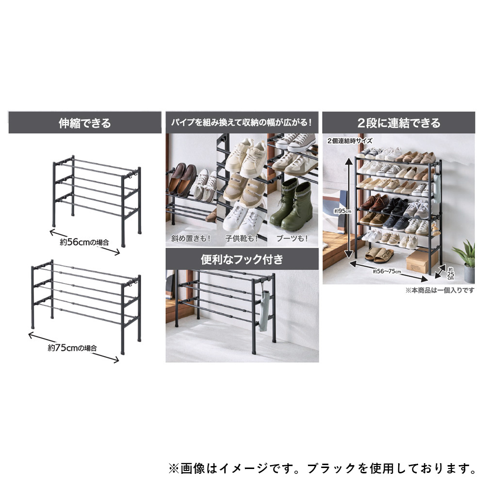 シューズラック 伸縮 3段 連結 靴 収納 玄関 Quick Lock