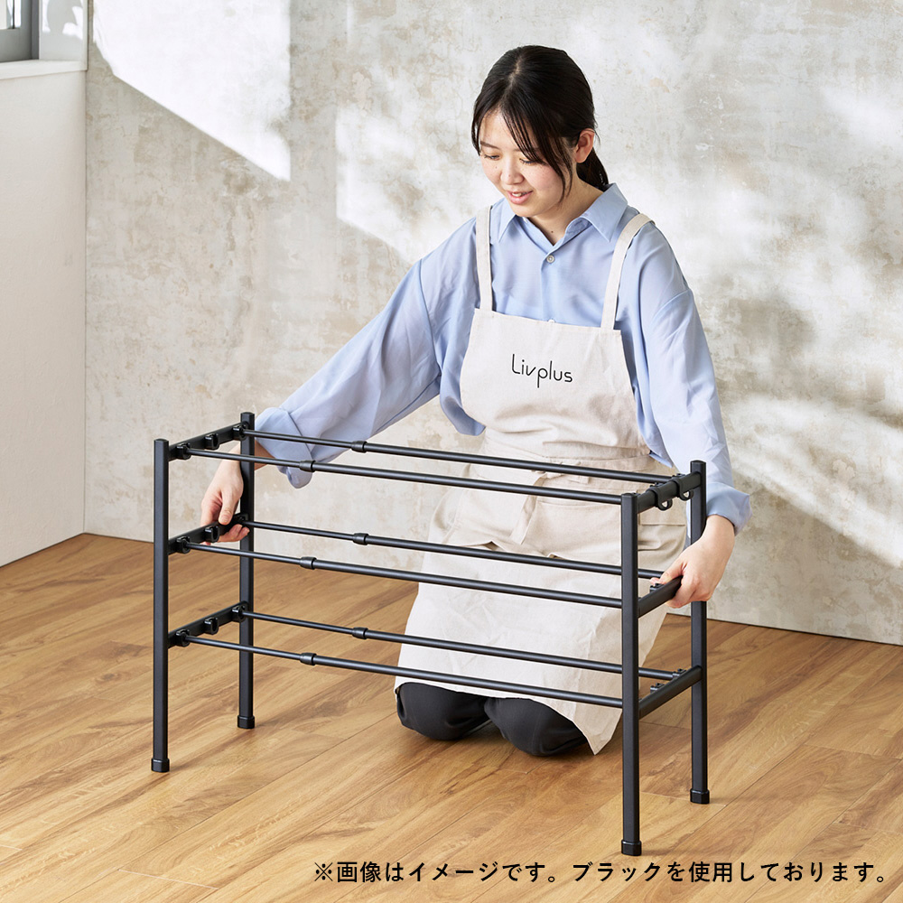 玄関スペースに合わせて横幅が伸縮できるので便利で使いやすい。
