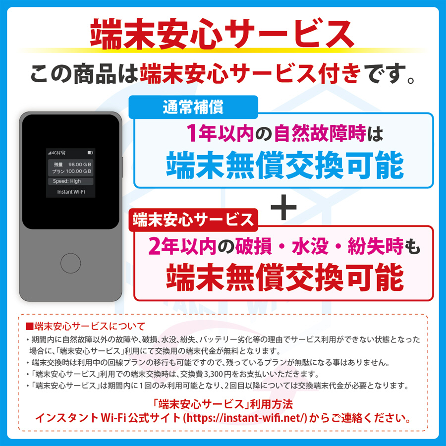 【契約不要】【買い切り】インスタントWi-Fi 端末セット T8+100GB 365日(端末安心サービス付き)