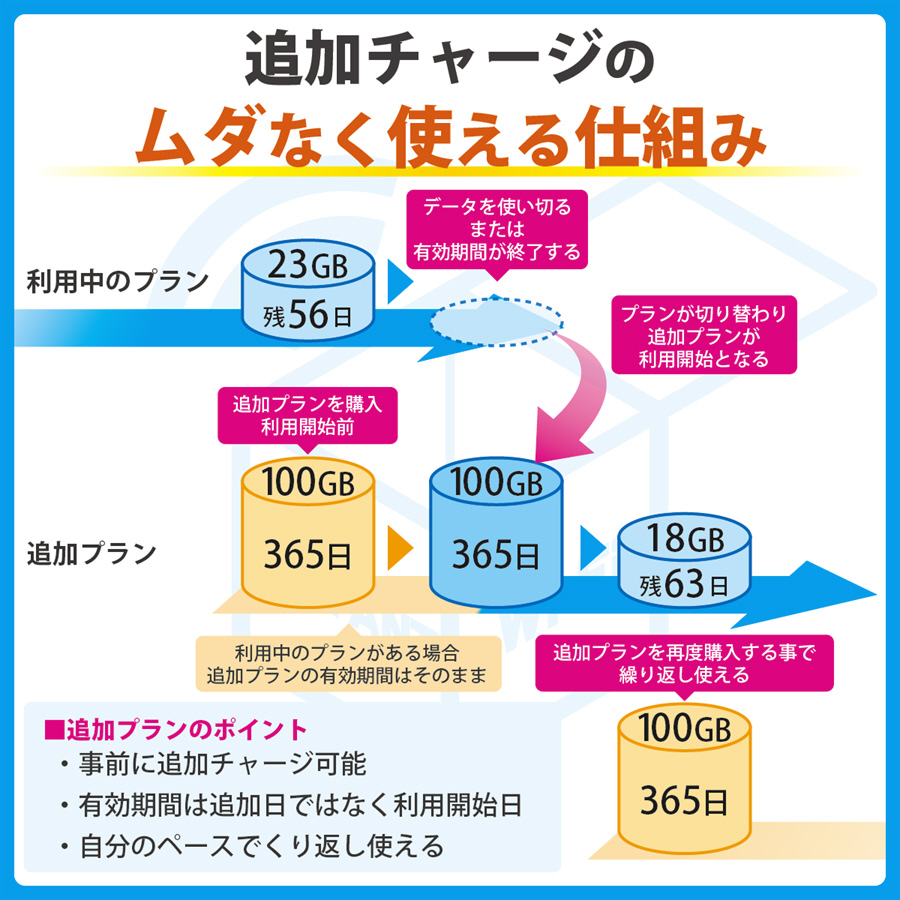 利用期間も1日/5日/30日/365日の4パターンからご利用シーンに合わせてお得に追加いただけます!