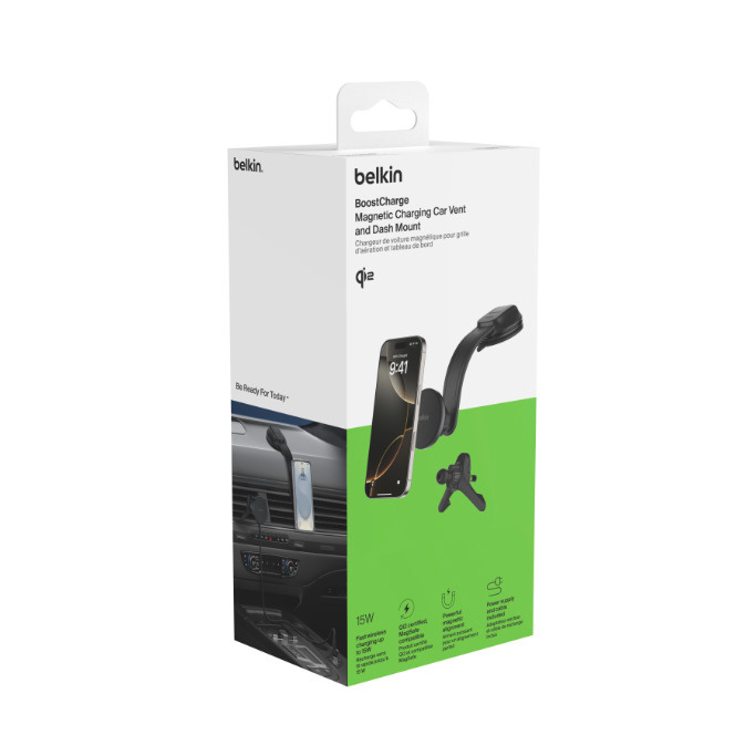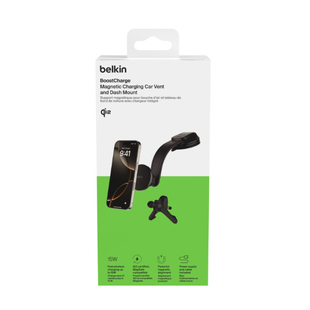 Qi2 15W ワイヤレス車載充電器(ベントマウント&ダッシュマウント) ブラック WIC012FQBK