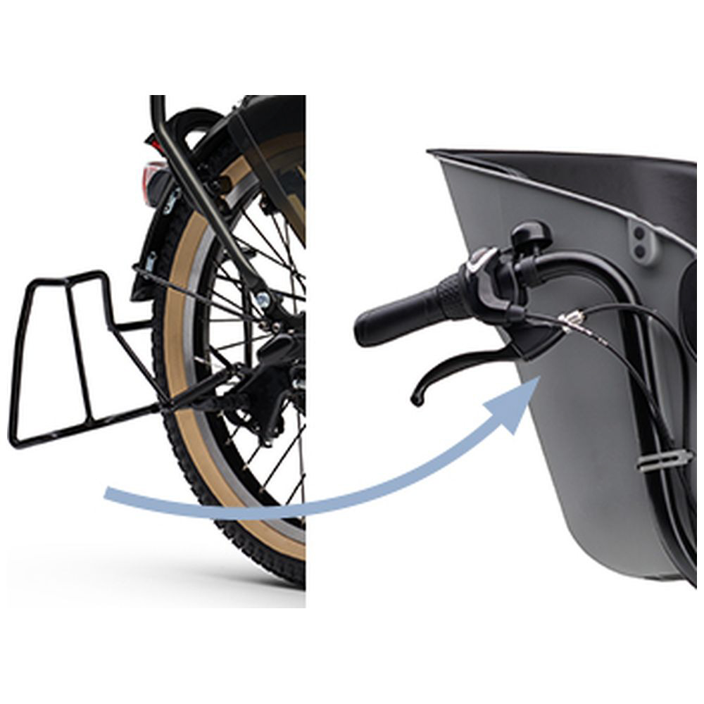 お子さまが増えたら、後ろ乗せをプラス。お子さまが成長したら前カゴに付け替え可能。