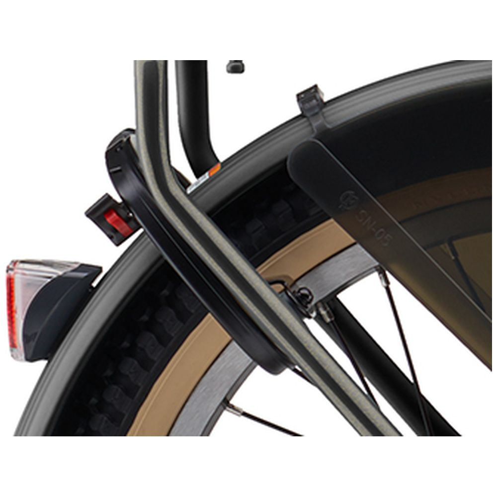 フロントはVブレーキ、リヤは大型フィン付きローラーブレーキを採用。