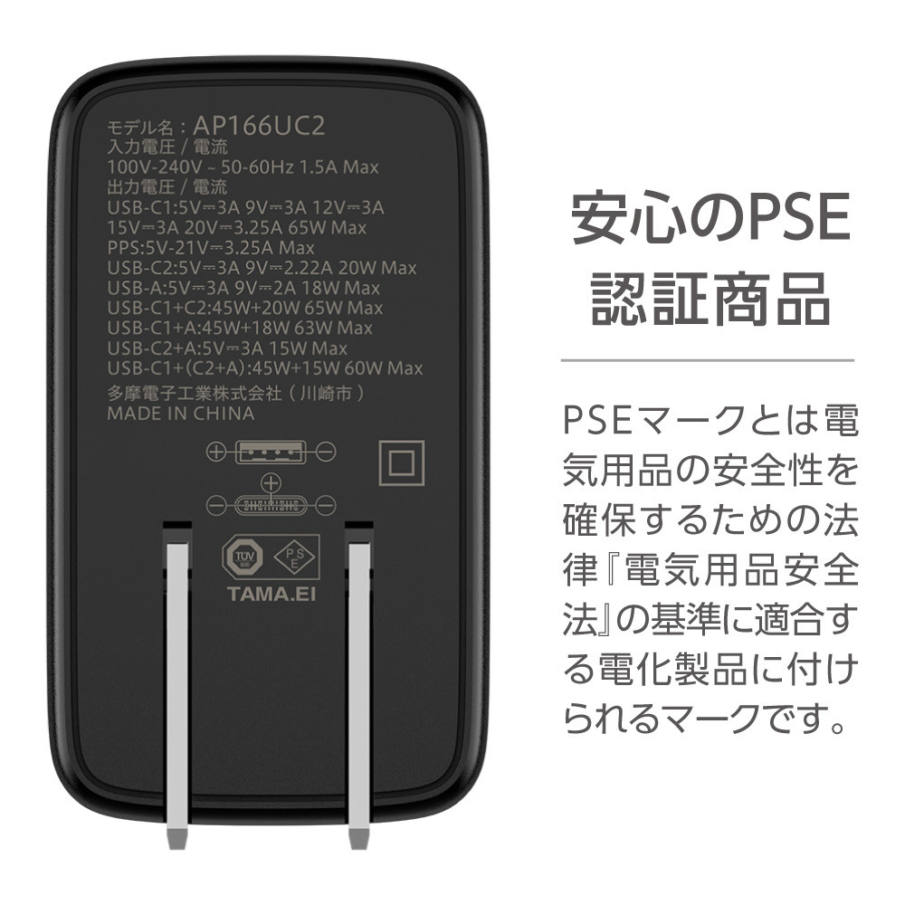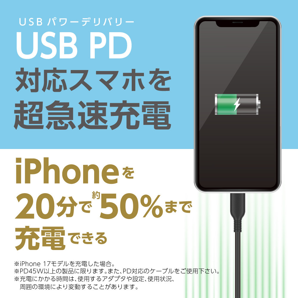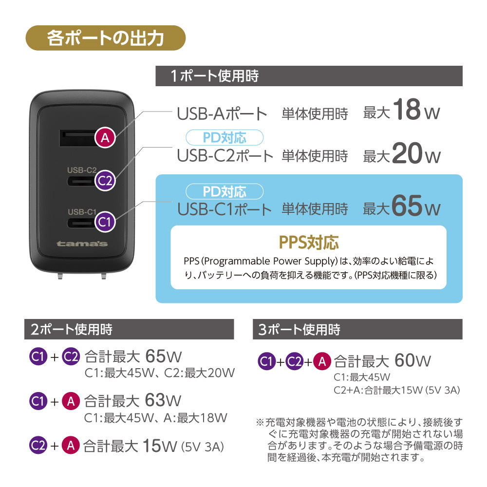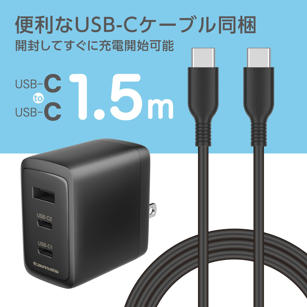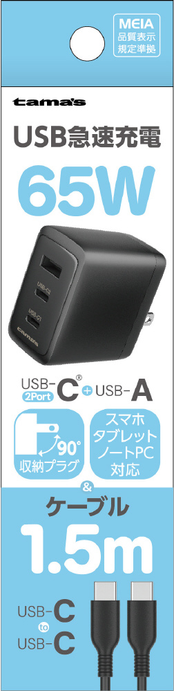 PD65W対応充電器CtoCケーブル付 ブラック TAP166UC2CC15K