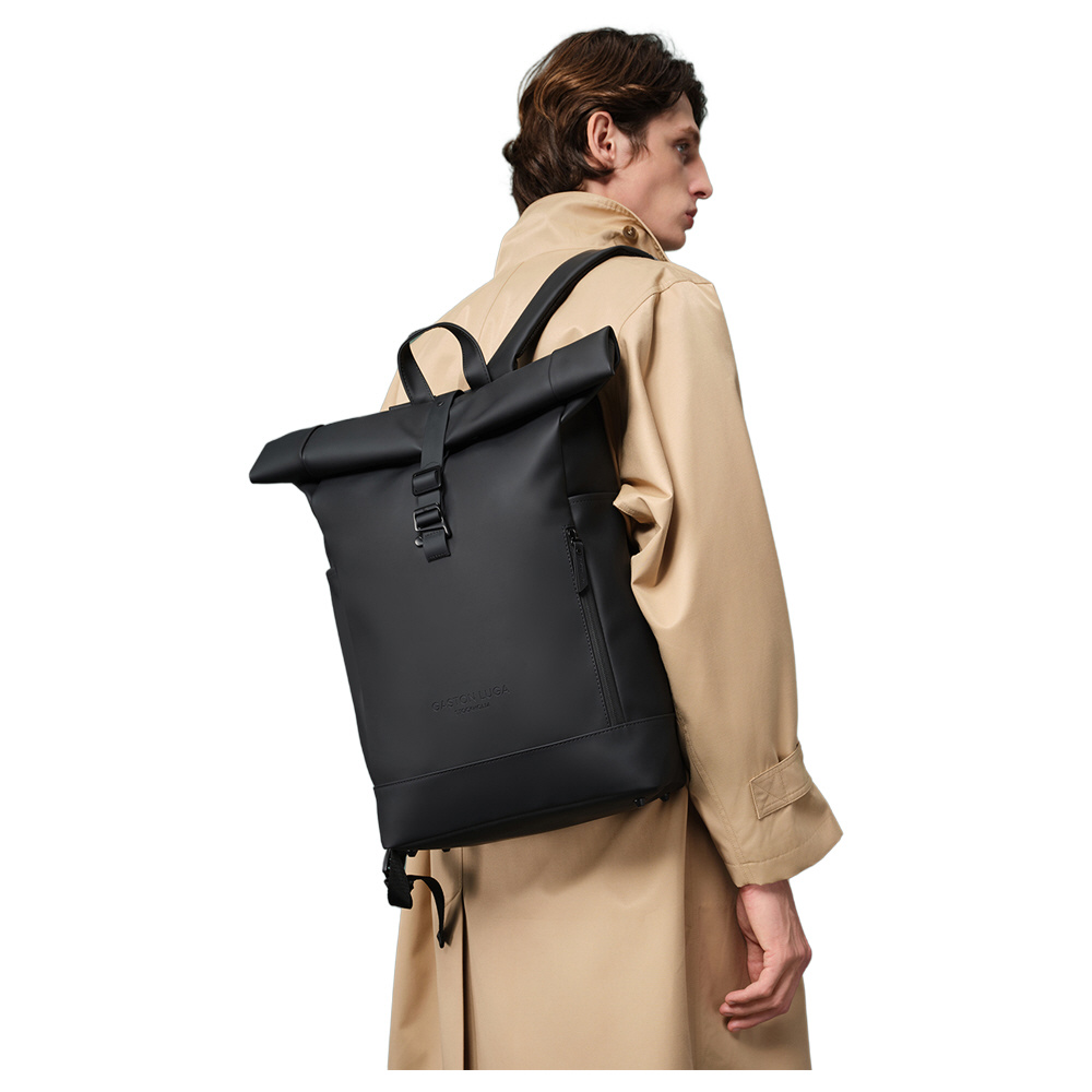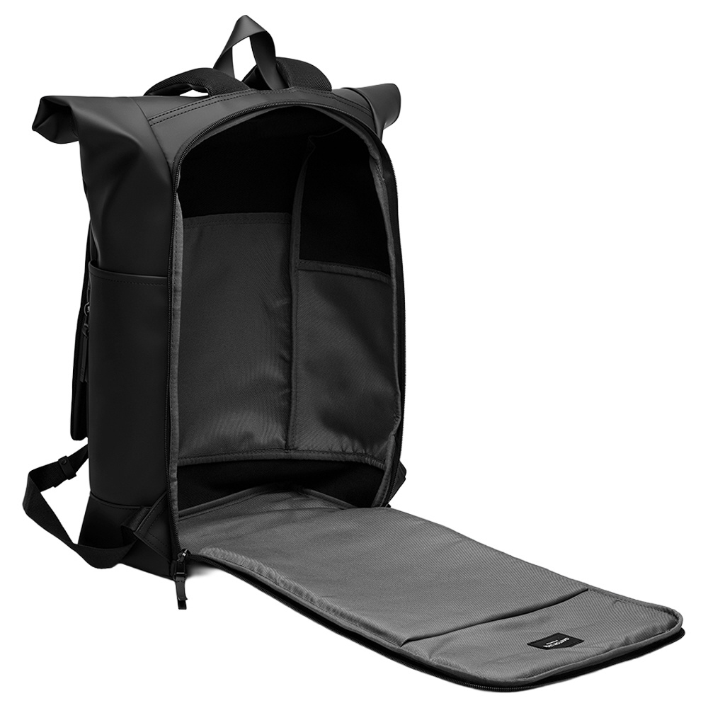 防水性能8,000mmのエコフレンドリーな素材を使用した「Splash Rolltop 16インチ バックパック」は、あらゆる悪天候に耐えられるよう設計されています。ロールトップデザインには広いファスナー開口部があり、11〜16インチのほとんどのラップトップが収納可能な広々としたメインコンパートメントへ簡単にアクセスできます。背面にはクッション性と通気性を兼ね備えたパッドが施されており、一日中快適に背負えるため、都市を移動する探検家に最適です。