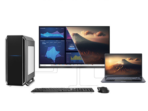■KVM機能に対応。モニターに接続したキーボード、マウスをデスクトップPCやUSB-C接続のノートPCで入力を切り替えた際にもそのまま使用可能です。