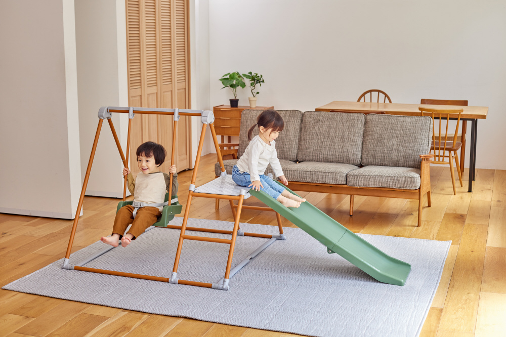 すべり台は階段を登る動作やすべる時の姿勢やスピードで、全身の筋肉やバランス感覚を養うことができます。角度は公園の一般的なすべり台と同程度です。(約32°)