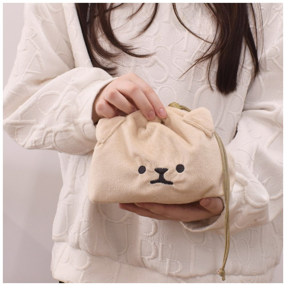 ■「みるくねこ、ちゃまめしば、くろまめしば」の顔を表現した、ぬいぐるみのようなフェイス巾着です。