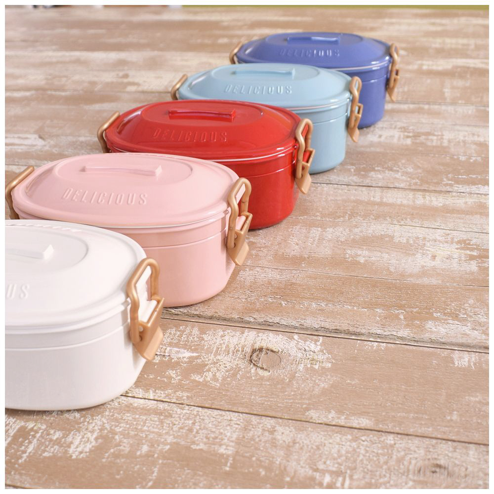 ■「DELICIOUS」の刻印とつやっとした塗装が印象的な2段ランチボックス。