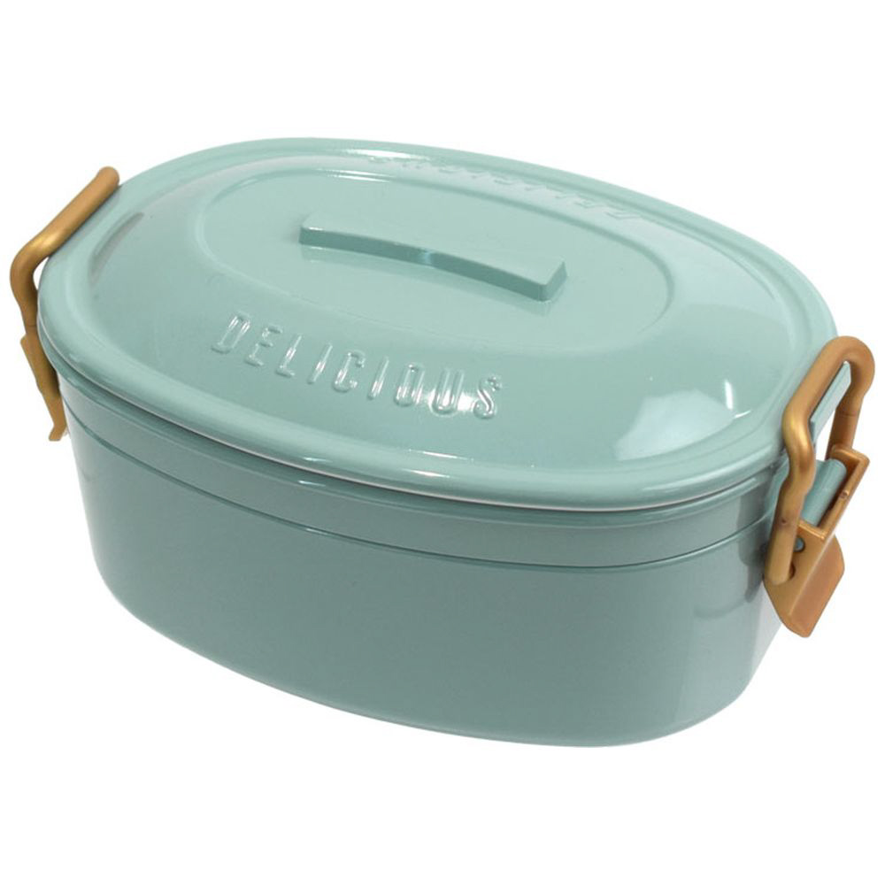 ■「DELICIOUS」の刻印とつやっとした塗装が印象的な2段ランチボックス。
