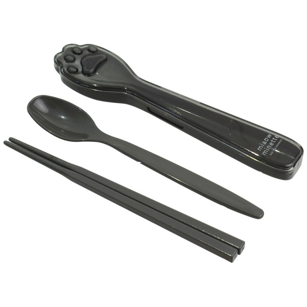 ケースにねこの肉球をイメージした凹凸を付けたコンビセット。箸・スプーン全長18cm。