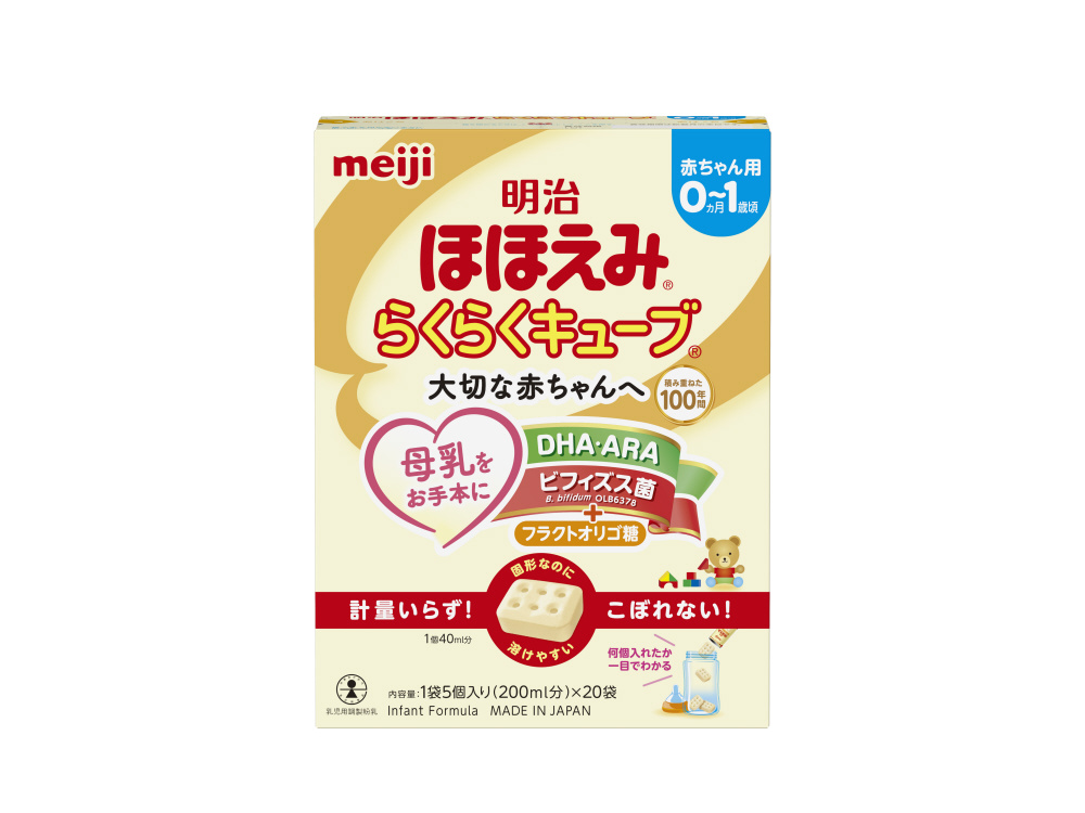 0〜1歳までの赤ちゃんのための母乳代替食品・国内初・国内唯一のビフィズス菌配合乳児用ミルク・キューブ形状で育児負担の軽減に貢献・母乳に近づけた栄養設計により、赤ちゃんの確かな発育をサポート