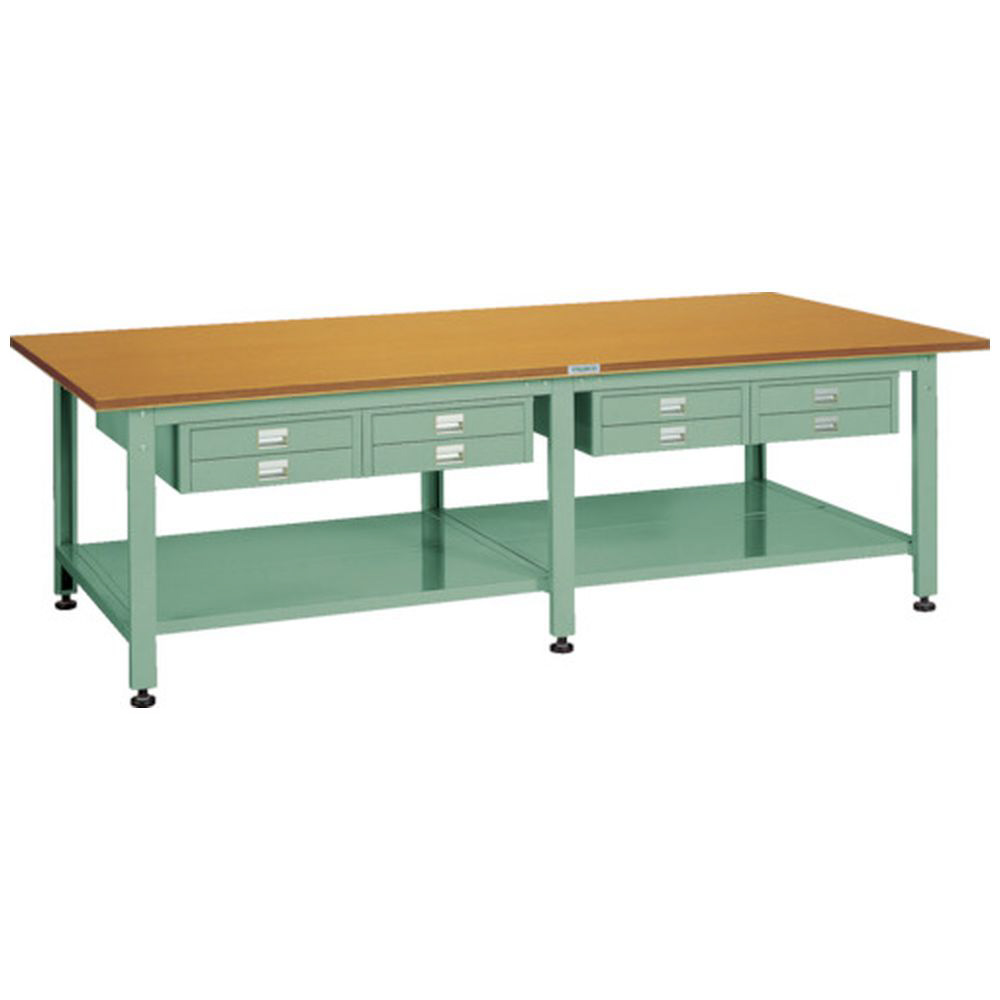 TRUSCO 中荷重大型作業台(1500kg)HWD型 2400×1200×H740 2段薄型引出8個・下棚付 グリーン色