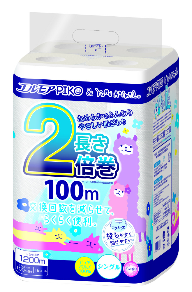 ・たっぷり長持ち2倍巻きでトイレットロールの交換回数を減らせます。