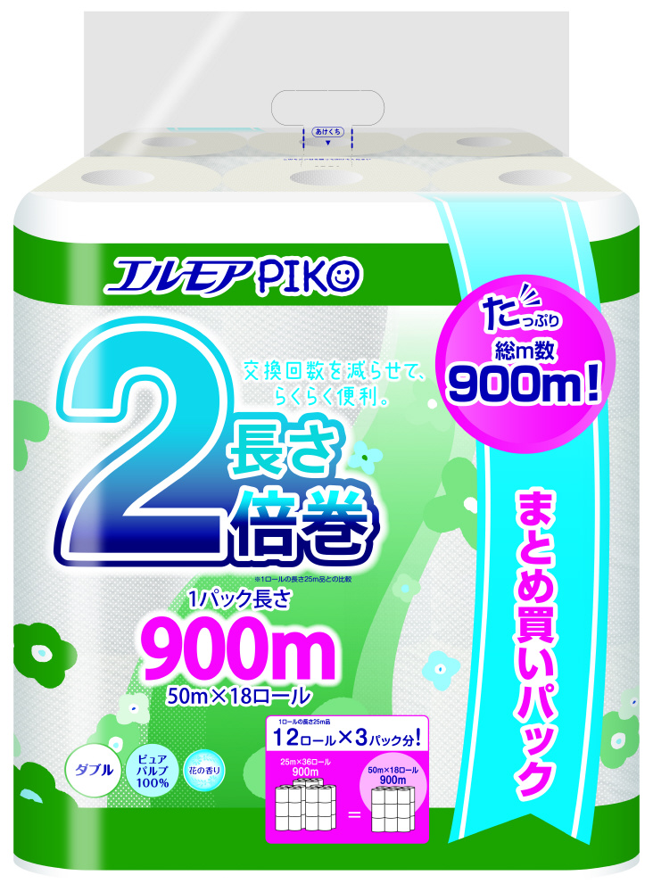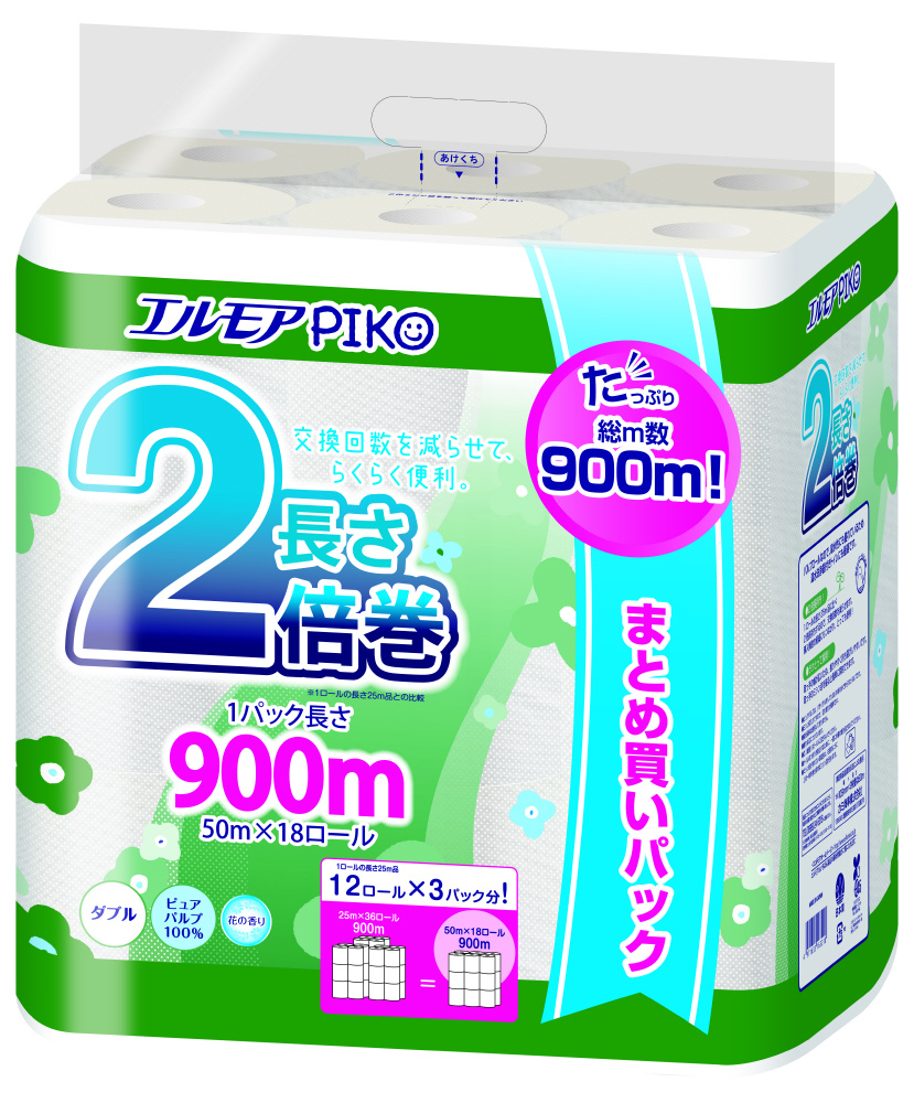 ・たっぷり長持ち2倍巻きでトイレットロールの交換回数を減らせます。