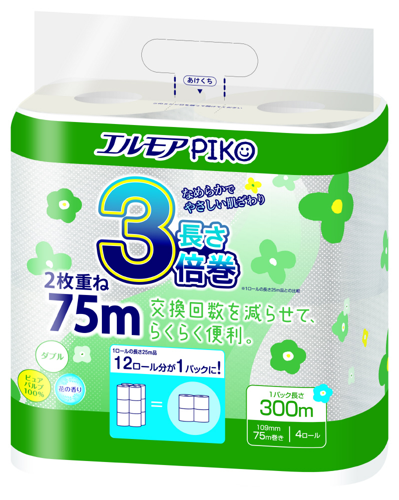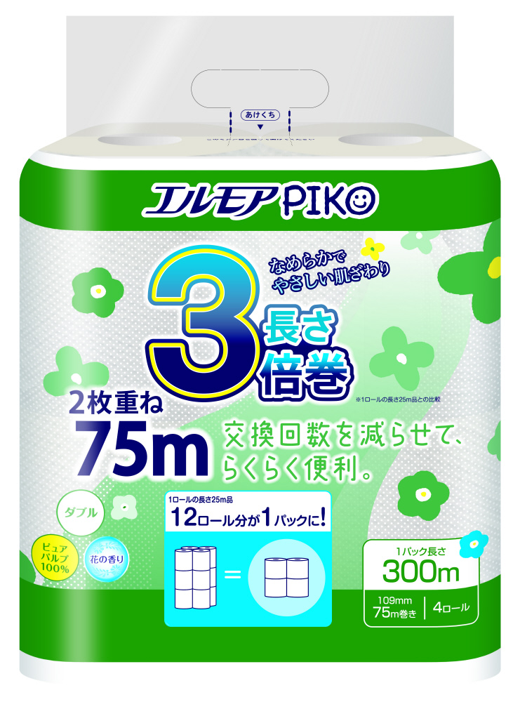 ・たっぷり長持ち3倍巻きでトイレットロールの交換回数を減らせます。