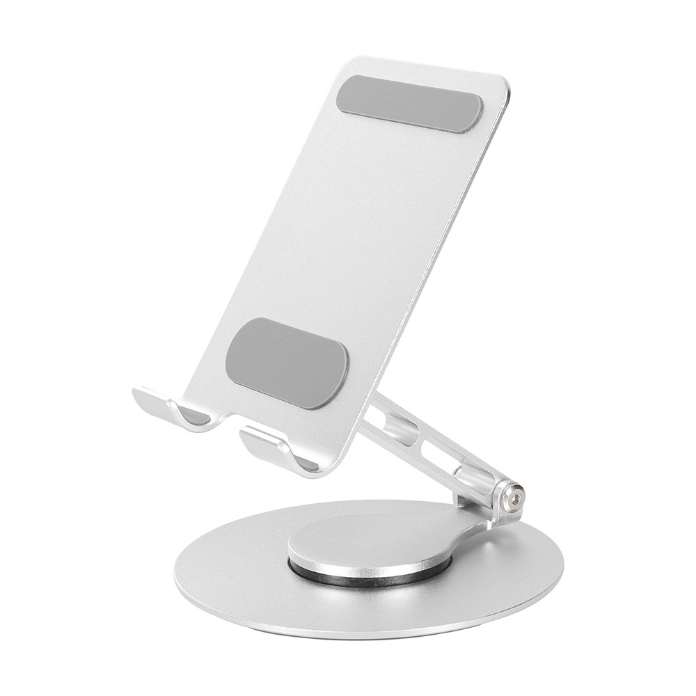 折りたためるアルミスタンド スマートフォン/タブレット向け 台座が360度回転&角度調節可能 シルバー OWL-STD14-SI