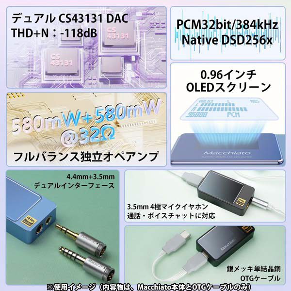 Macchiato-マキアート-は、Type-Cでスマホに接続するだけで、スマートフォンのサウンドをアップグレードできる、コンパクトなHi-Fi DAC/AMPデバイスです。