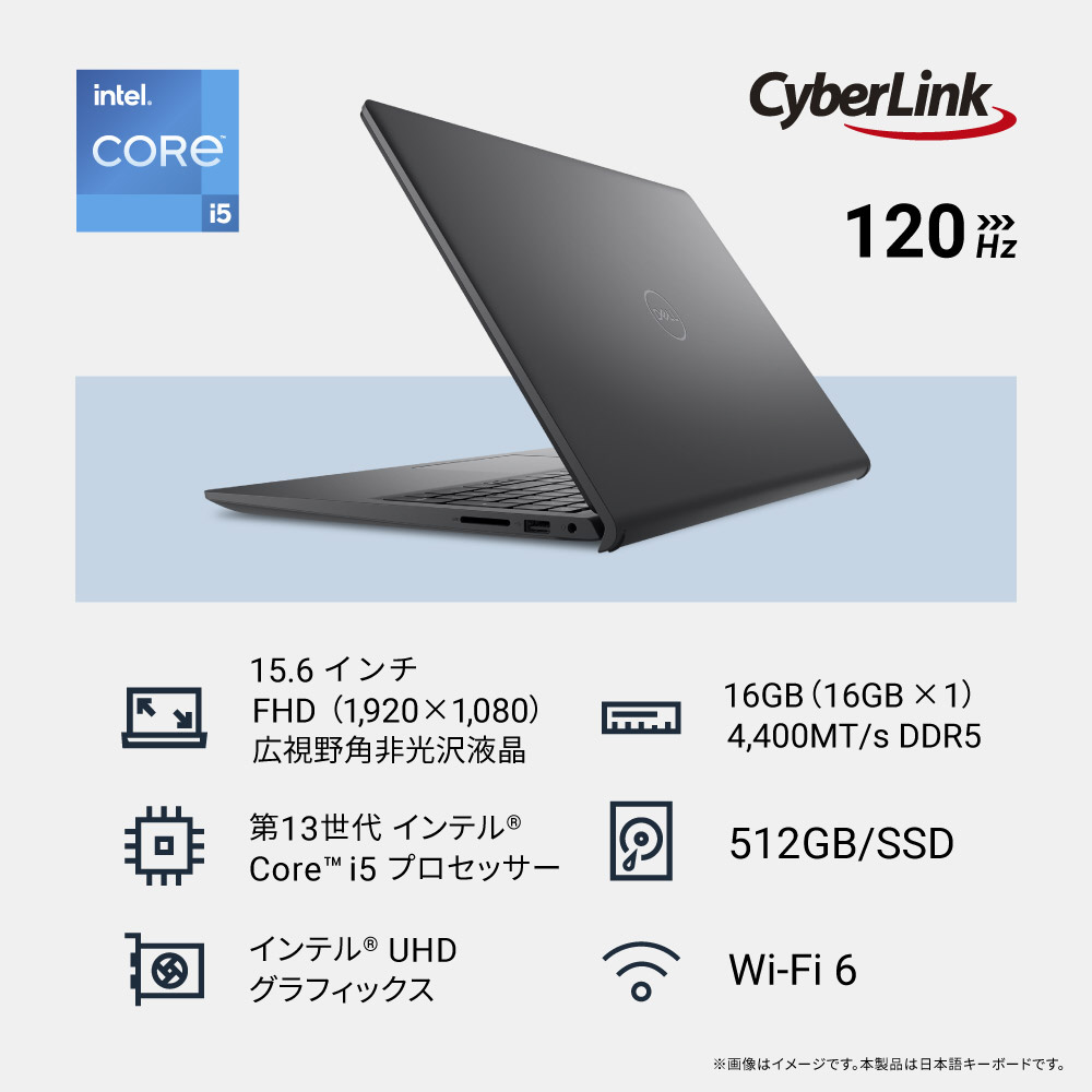ノートパソコン Dell 15(DC15250 v2) カーボンブラック ND65-GHM3BC [15.6型 /Windows11 Home /intel Core i5 /メモリ:16GB /SSD:512GB /Microsoft 365 Personal /日本語版キーボード /2026年春モデル]