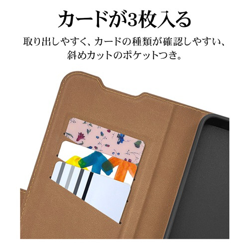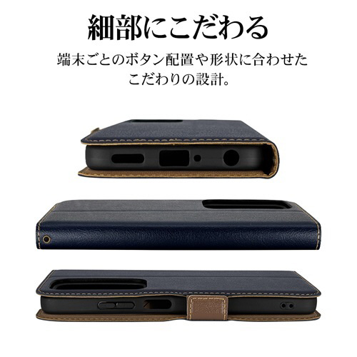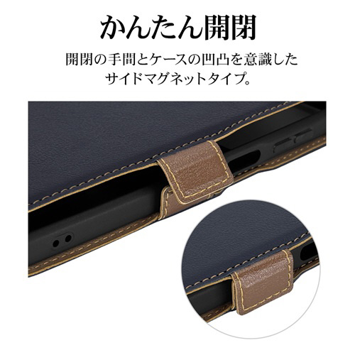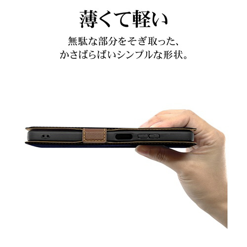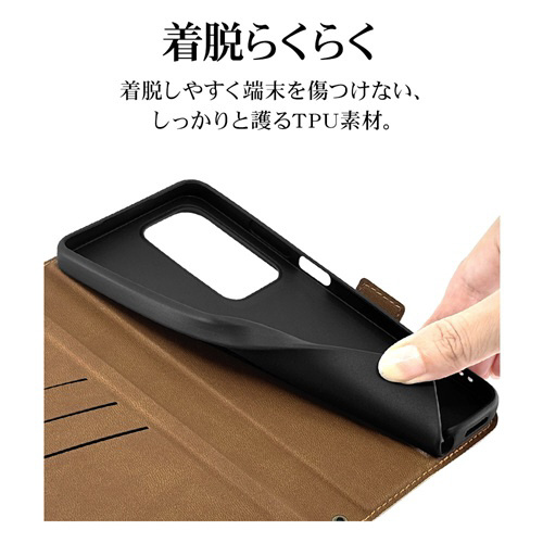 液晶画面側と背面側の両面を保護できる薄型で持ちやすい手帳型ケースです。