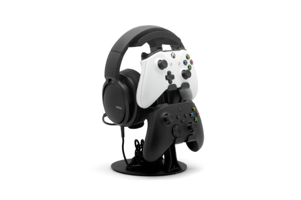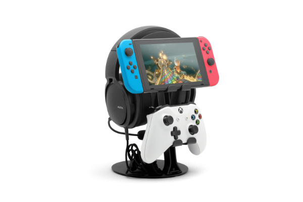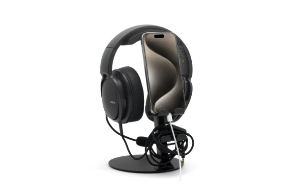 ヘッドホン、ゲームコントローラー、携帯型ゲーム機、iPhoneやスマートフォンを安定して収納できるデスクトップハンガーです。