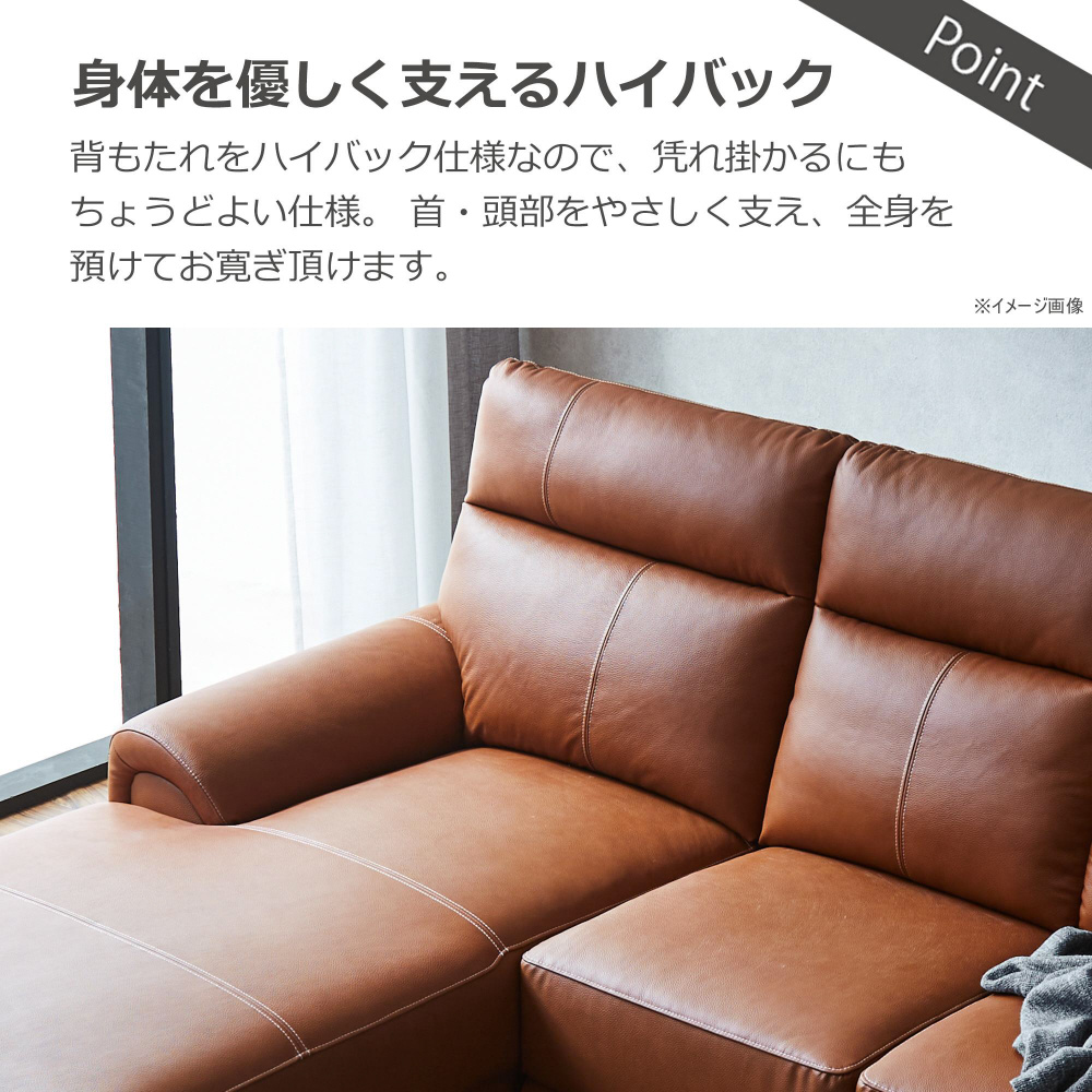 背もたれハイバックの本革ソファ