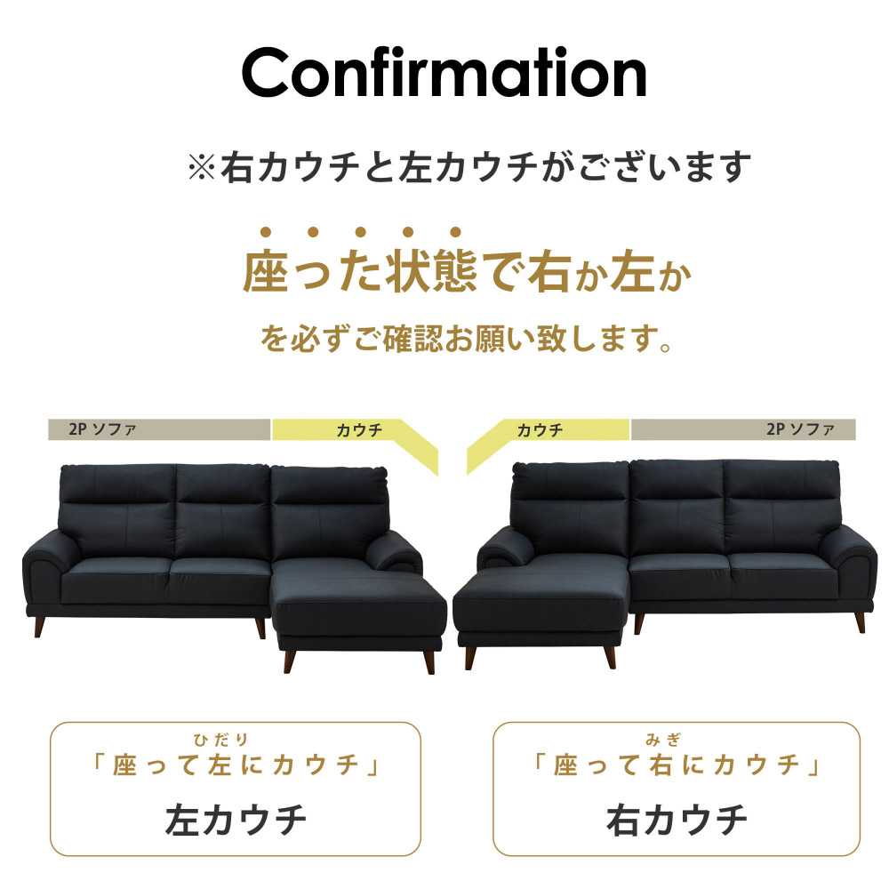 左カウチソファ プリバ 本革 ブラック ブラック 454115