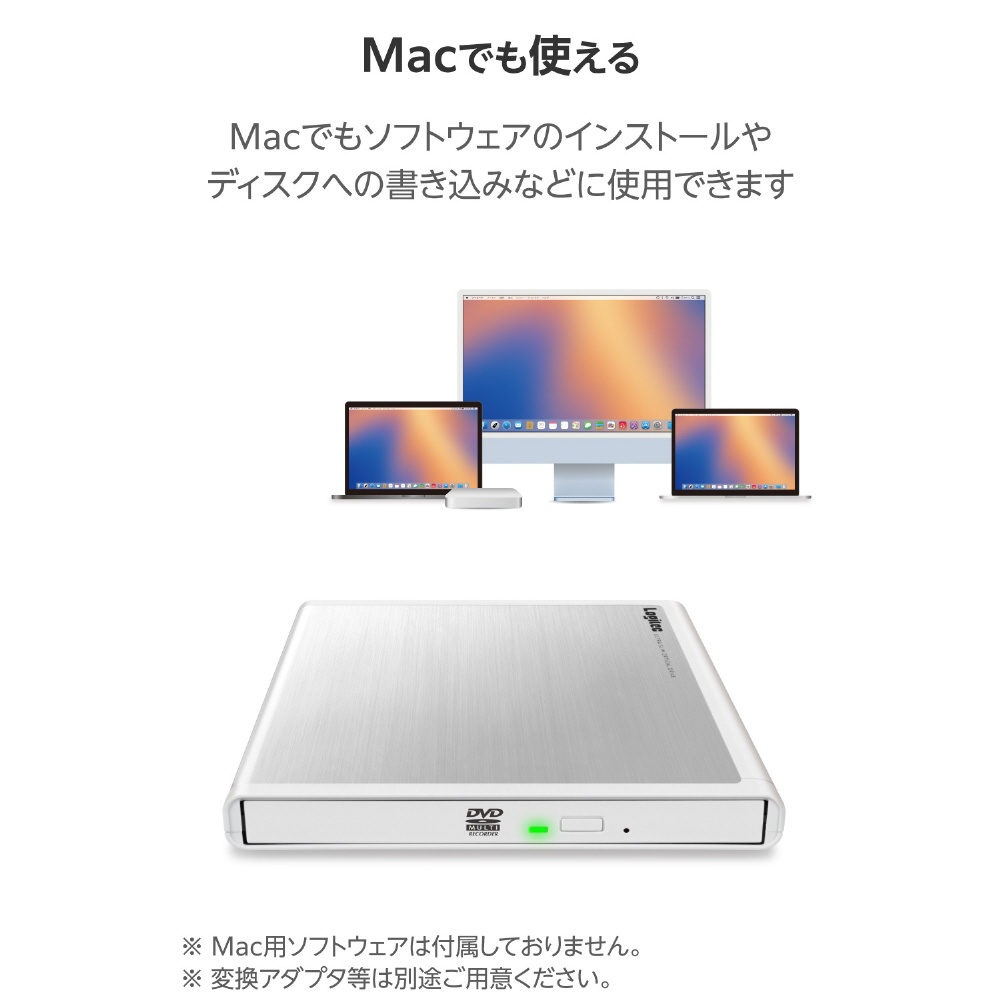 ポータブルDVDドライブ 再生/編集/書込ソフト:Windows用(Chrome/Mac/Windows11対応) ホワイト LDR-PMM8U2VWH [USB-A]