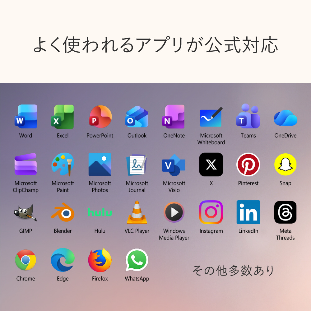 [無線 LAN]Wi-Fi 7 ※6GHz帯は地域によって利用できない場合があります。 [ソフトウェア] Microsoft Defender App※ ※Microsoft 365 PersonalまたはFamilyのサブスクリプションが必要です。 Preloaded Xbox app [搭載センサー]環境カラーセンサー